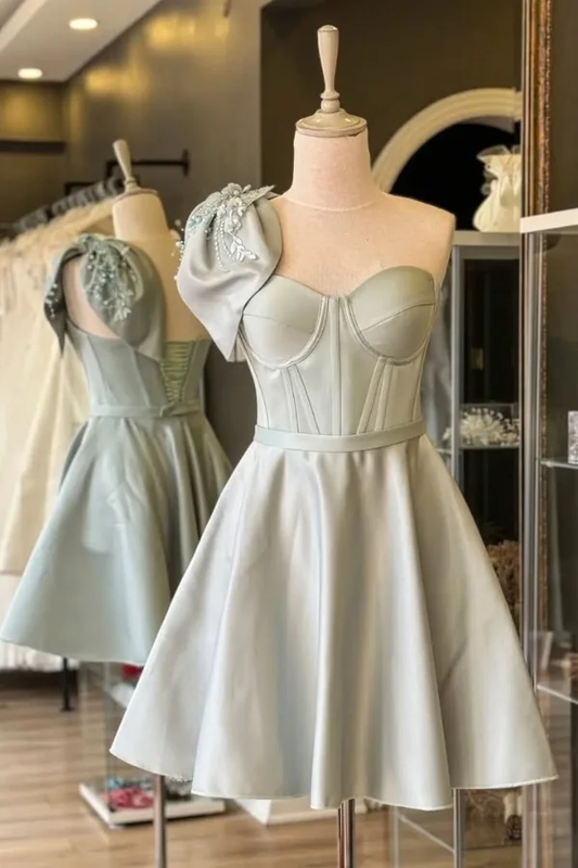 Charming Bow One Shoulder A Line Short 7th Grade Homecoming Dress White Formal 21st Birthday Outfits D545
