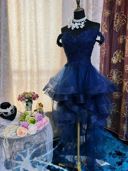 Vintage Navy Blue Tulle Appliques A Line Short Homecoming Dress Off The Shoulder 19th Birthday Outfits D725