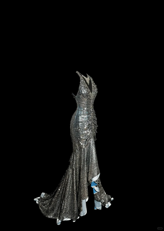 Vintage Mermaid V Neckline Gray Sequin Long Prom Gown Fairy Prom Dresses SD2958