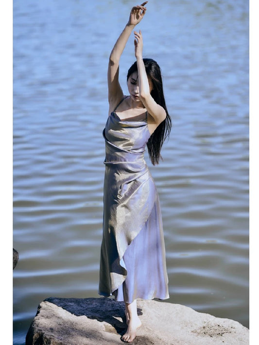 Vintage Sheath Spaghetti Straps Silver Gray Ankle Length Prom Dresses Birthday Outfits SD473
