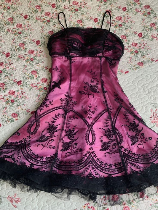 Vintage Spaghetti Straps Hot Pink A Line Short Homecoming Dress Cocktail Dress D714