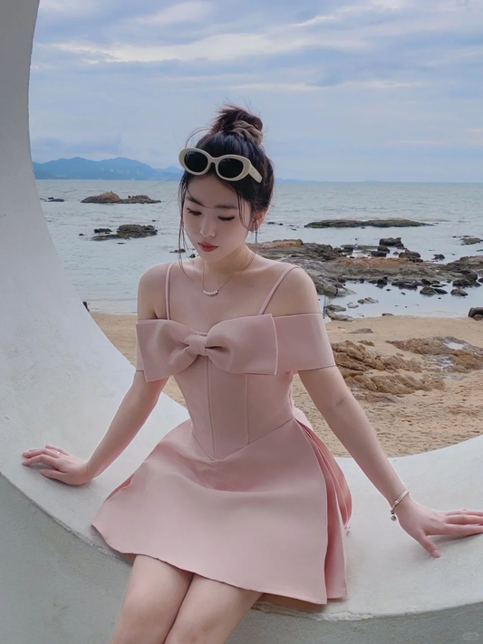 Cute Pink Sleeveless Satin A Line Birthday Outfits Vacation Dress S692