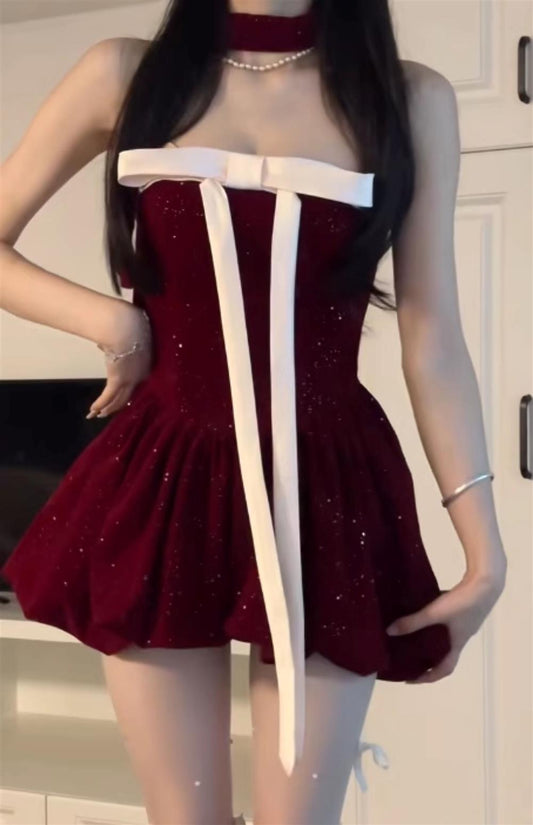 Ball Gown Halter Dark Red Christmas Dress Birthday Dresses Birthday Outfits SD1126