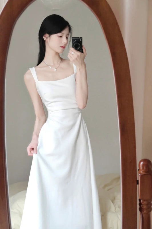 Sexy A Line Square Neckline White Holiday Dresses Night Dress Birthday Outfits SD1219
