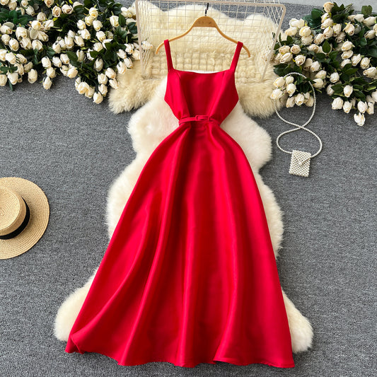 Simple A line Straps Red Holiday Dresses Midi Length Women's Dress SD1271