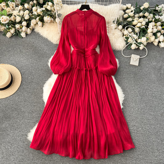Vintage A line Scoop Long Sleeves Red Holiday Dresses Women's Dress SD1286