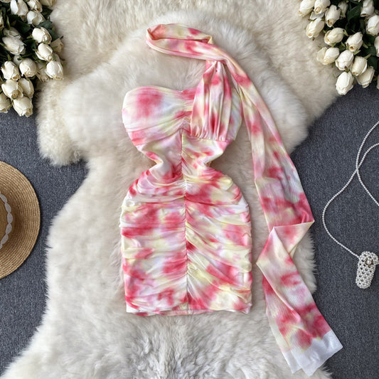 Sexy Sheath Strapless Pink Floral Holiday Dresses Short Length Women's Dress SD1276
