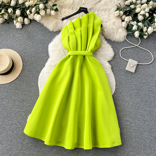 Simple A line One Shoulder Ruffles Bud Green Holiday Dresses Midi Length Women's Dress SD1279