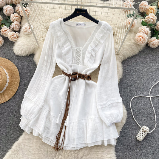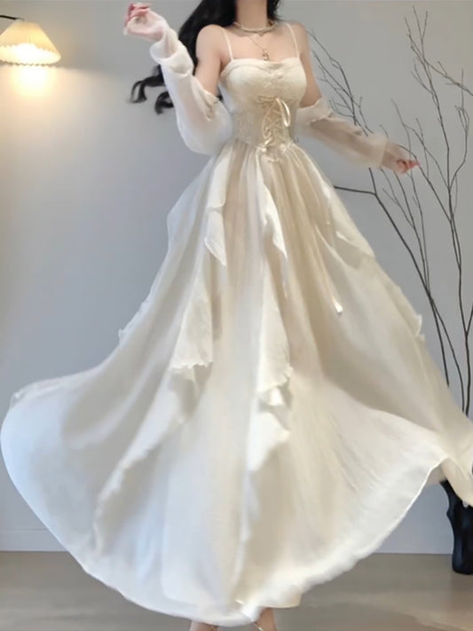 Vintage A line V Neckline Long Sleeves White Holiday Dresses Women's Dress SD1290