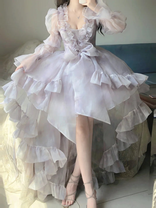 Vintage Purple Chiffon Multi-Layered Homecoming Dress Off The Shoulder Sweetheart Neck Birthday Outfits S445