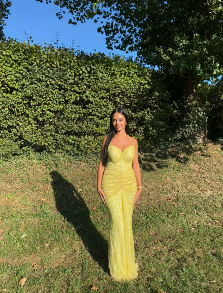 Sparkly Halter Yellow Sequin Pleated Mermaid Long Evening Dress Formal Wedding Guest Dress Party Dress D1974