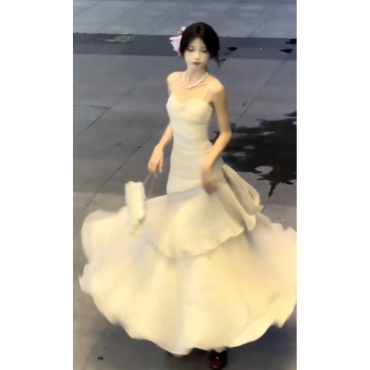 Sexy Mermaid Spaghetti Straps White Long Prom Dresses Night Dress Birthday Outfits SD1210
