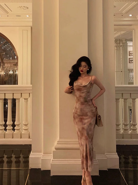 Sexy Sheath Spaghetti Straps Oil Painting Long Prom Dresses Birthday Outfits SD617