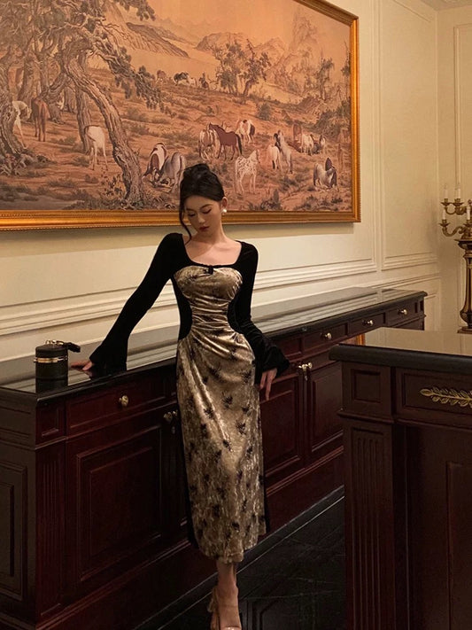 Sexy French Sheath Square Neckline Black Prom Dresses Birthday Outfits Evening Gown SD1039
