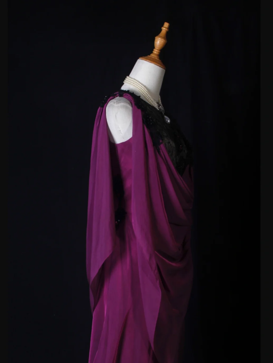 Elegant Sleeveless Purple Chiffon Lace Mermaid Long Party Dress Evening Gown With Beaded D2274