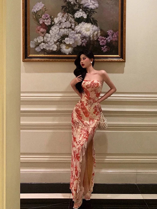 Pretty Sheath Strapless Sleeveless Pink Floral Date Night Dress Prom Dresses Birthday Outfits SD701