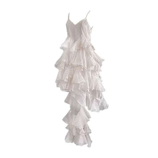 Chic High Low Spaghetti Straps Prom Dresses Birthday Dress With Ruffles SD258
