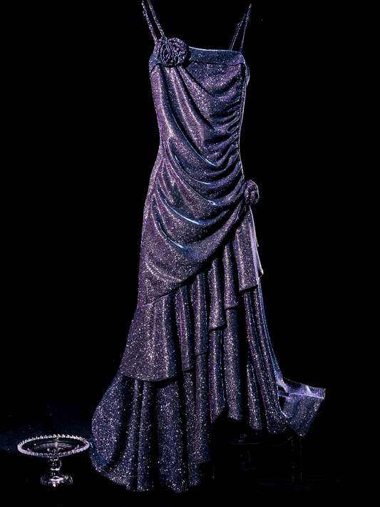 Vintage Mermaid Spaghetti Straps Long Purple Sequin Prom Dresses Birthday Outfits With Flowers SD484