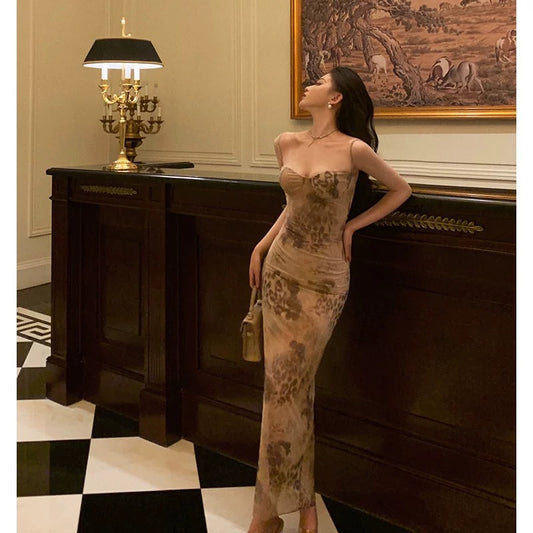 Sexy Sheath Spaghetti Straps Champagne Floral Prom Dresses Birthday Outfits SD754