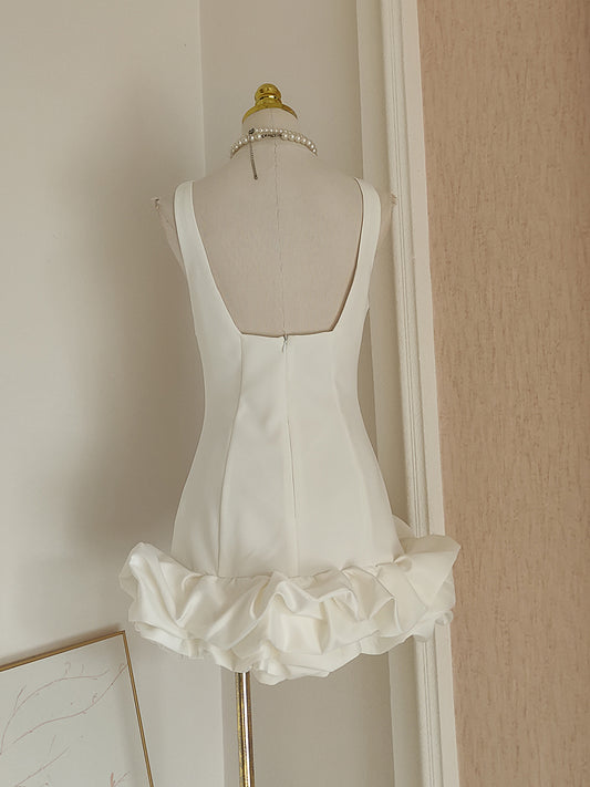 Sexy Sheath White Satin Holiday Dress Travel Vacation Dresses Short Birthday Dress SD1253
