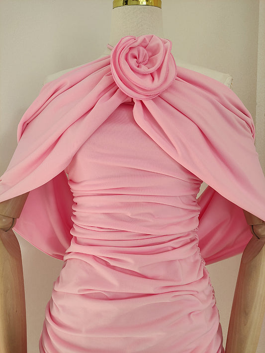 Sexy Sheath Halter Pink Floral Holiday Dress Travel Vacation Dresses Short Birthday Dress SD1251