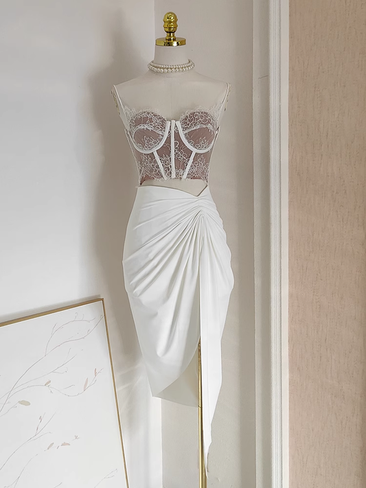 Sexy A Line Straps White Satin Vacation Dresses Short Birthday Dress SD238