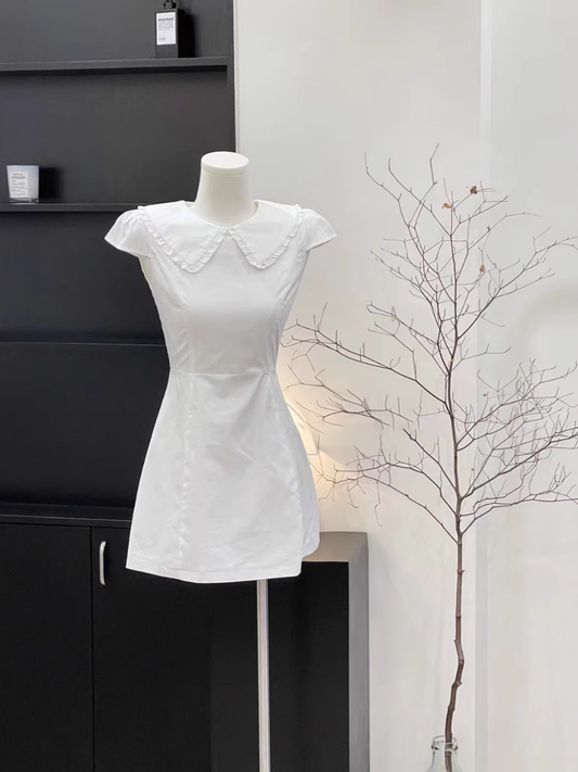 Cute A Line Doll Collar Sleeveless Cotton White Short Women's Holiday Summer Dresses SD204