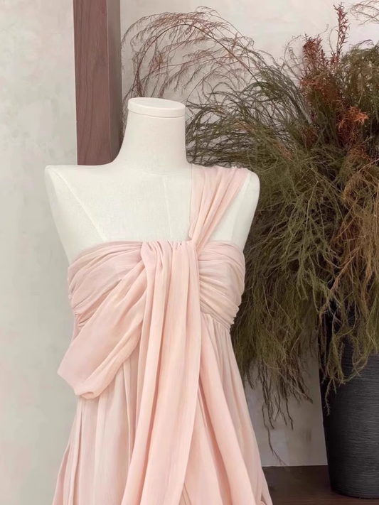 Sexy Sheath Halter Ruffled Light Pink Short Women's Holiday Summer Dresses SD202