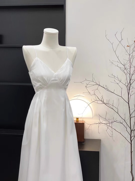 Sexy A Line Straps Silk Chiffon White Long Women's Holiday Dresses SD211