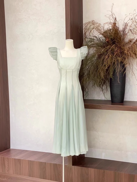 Chic A Line Square Neckline Chiffon Mint Green Women's Holiday Dresses SD215