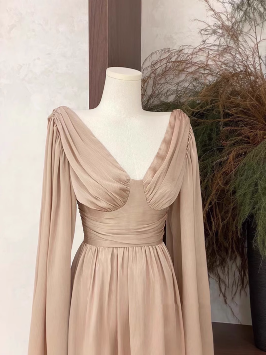 Simple A Line V Neckline Ruffled Long Sleeves Short Women's Holiday Dresses SD195