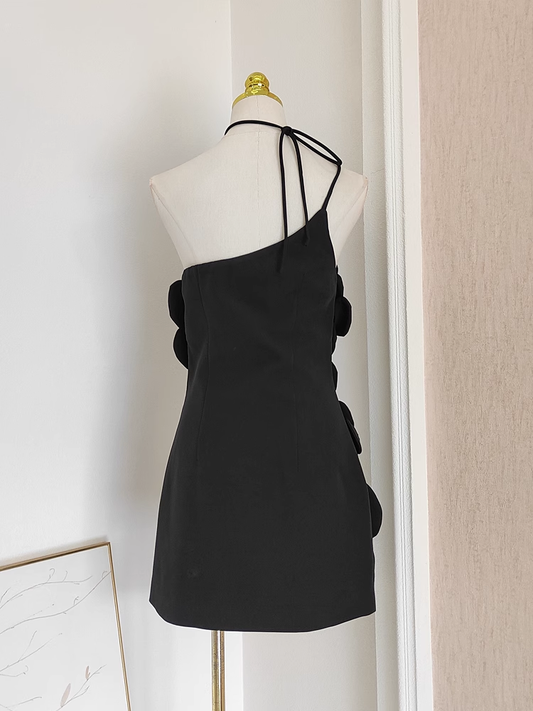 Cute A line Halter Black Flowers Vacation Dress Short Birthday Dresses SD178