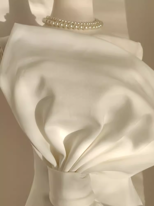 Cute A line Sweetheart White Satin Holiday Dresses Short Birthday Dress Pleated Three-dimensional Flowers SD166