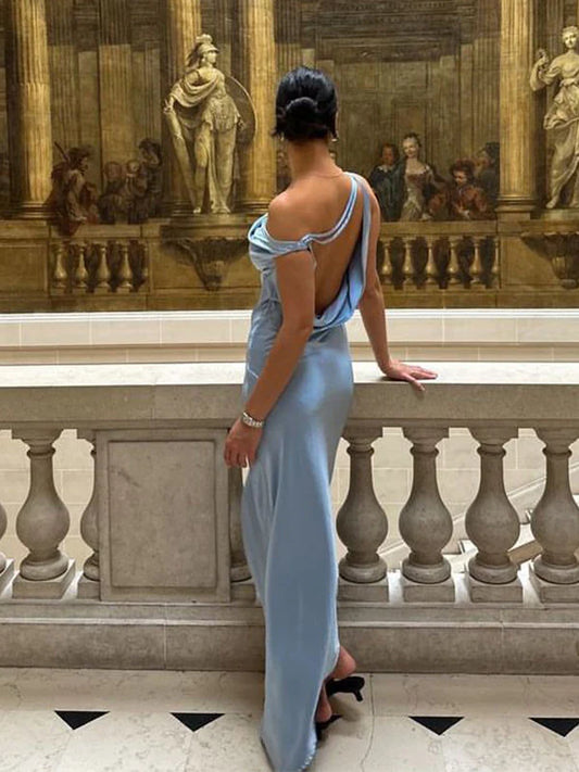Formal One-shoulder Sleeveless Mermaid Satin Evening Prom Dresses SD1591