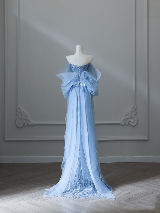 Mermaid Off The Shoulder Floor-length Sleeveless Light Sky Blue Prom Dresses SD1999