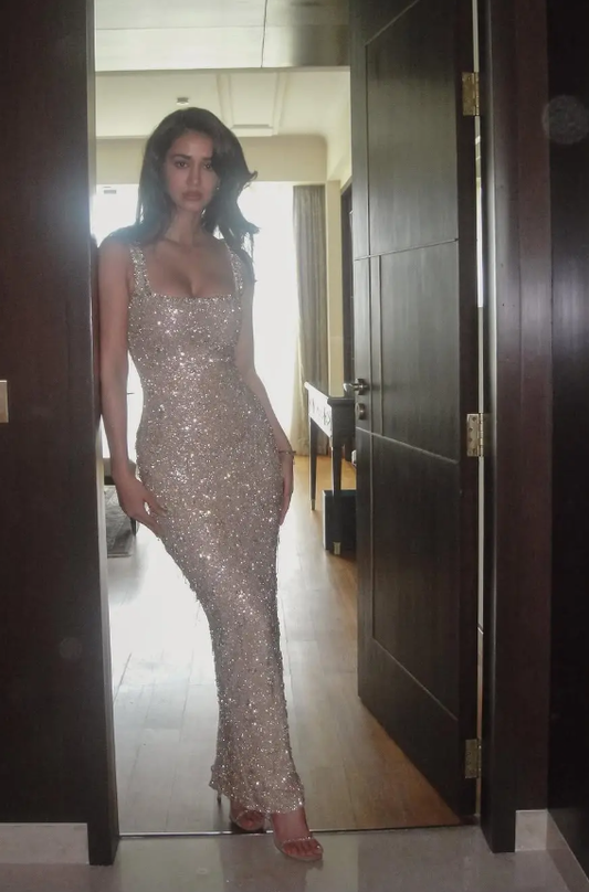 Glitter Sequins Mermaid Party Evening Dress Champagne Prom Dress S205
