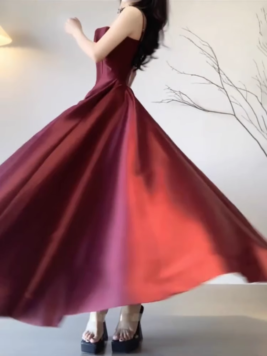 Sexy A line Spaghetti Straps Burgundy Long Party Prom Dresses Birthday Outfits SD561