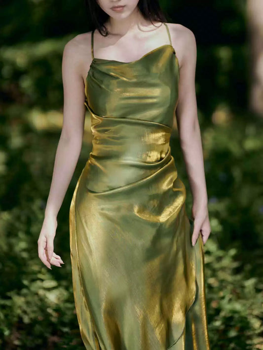 Vintage Sheath Spaghetti Straps Green Shiny Prom Dresses Birthday Outfits SD471