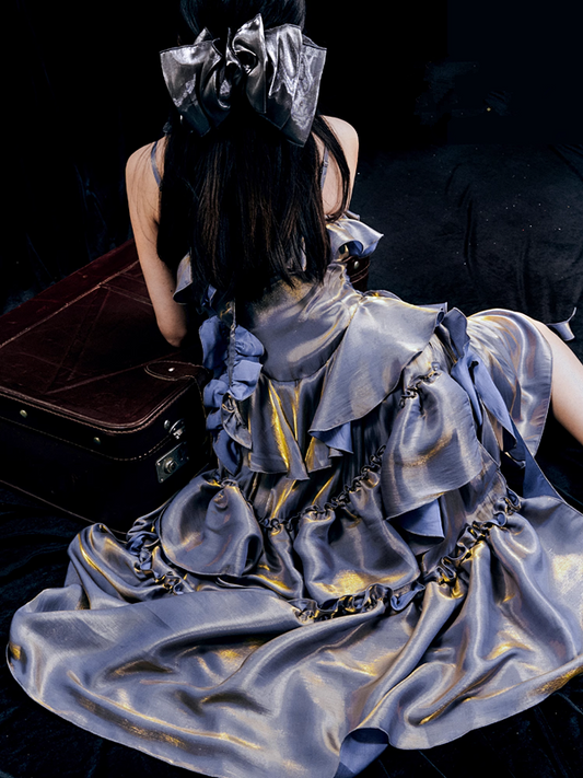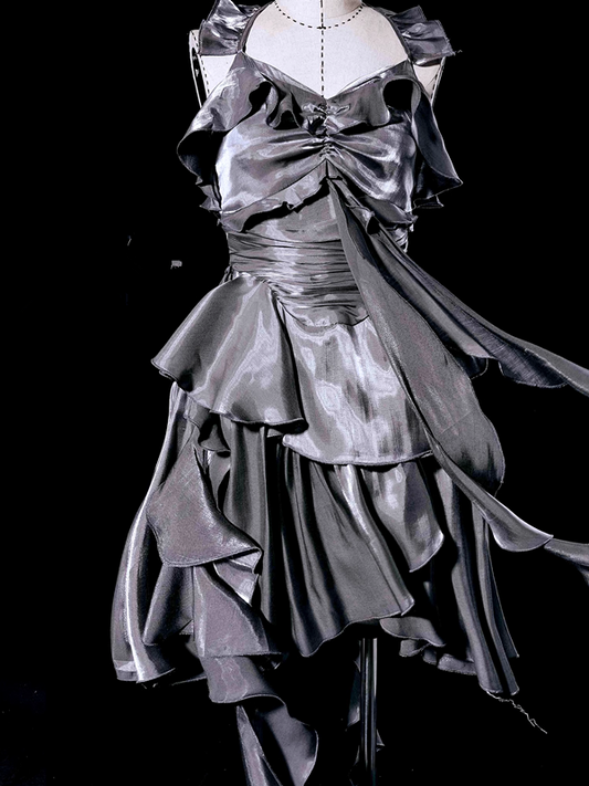 Retro High Low Irregular Spaghetti Straps Gray Short Birthday Dresses Birthday Outfits SD491