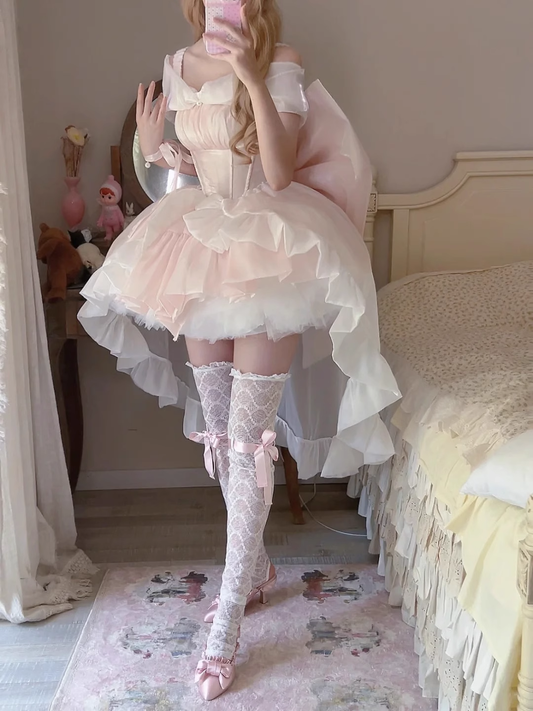 Retro Ball Gown Square Neckline Short Pink Cocktail Dresses Birthday Outfits SD538
