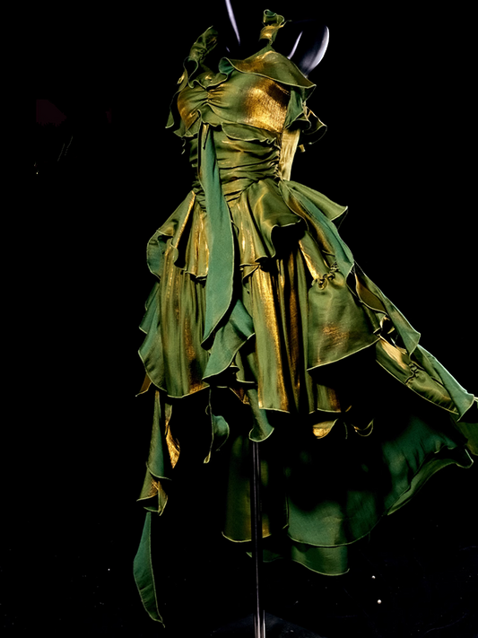 Retro High Low Irregular Spaghetti Straps Green Short Birthday Dresses Birthday Outfits With Train SD493