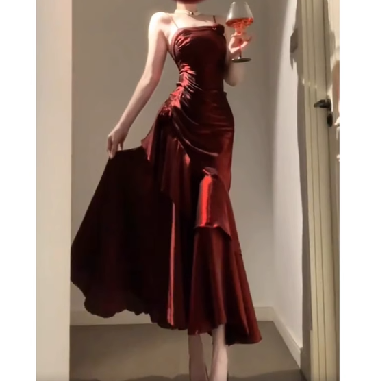 Retro Mermaid Spaghetti Straps Burgundy Ankle length Prom Dresses Birthday Outfits SD526