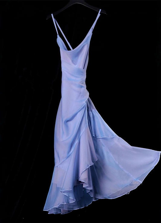 Retro High Low Spaghetti Straps Blue Knee Length Prom Dresses Birthday Outfits SD489