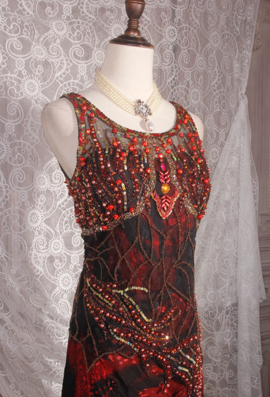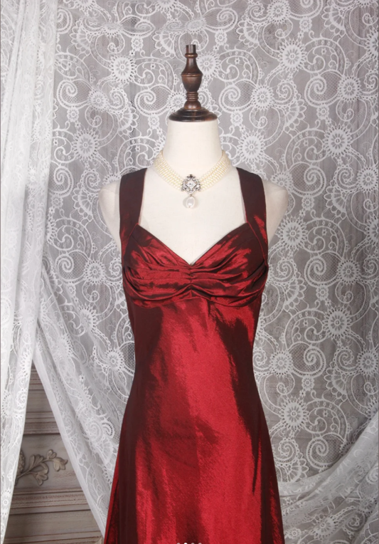 Vintage Red Strapless Satin Layered Mermaid Evening Dress Long Party Dress D2311