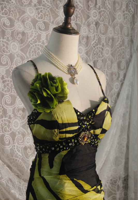 Unique Spaghetti Straps Green Chiffon Beaded Mermaid Long Prom Dress Evening Dress D2251