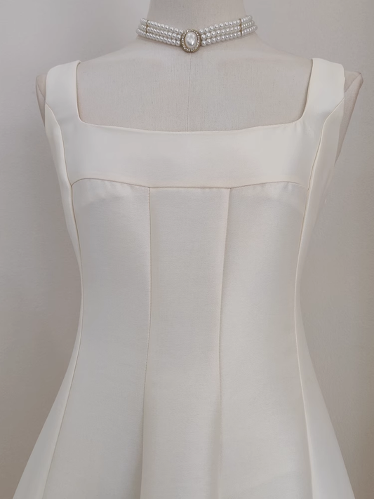 Cute A line Straps White Vacation Dress Satin Women Summer Dresses SD132