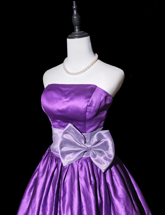 Fashion Purple Strapless Satin A Line Short Graduation Homecoming Dress Birthday Dress With Bow D2369
