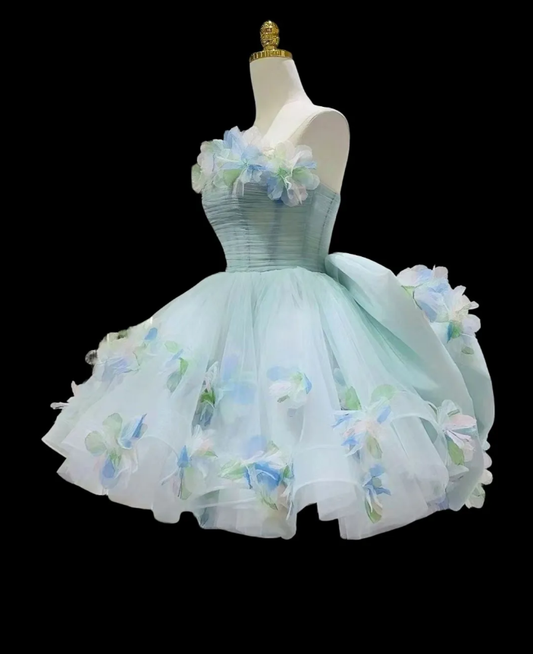 Beautiful Strapless Light Green Tulle Appliques Short Homecoming Dress 19th Birthday Outfits With Bow D2350