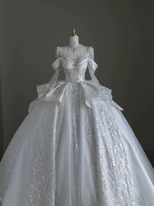 Pretty Ball Gown Scoop Neckline Long Sleeves Sequin White Wedding Dresses Brides Dress SD1953