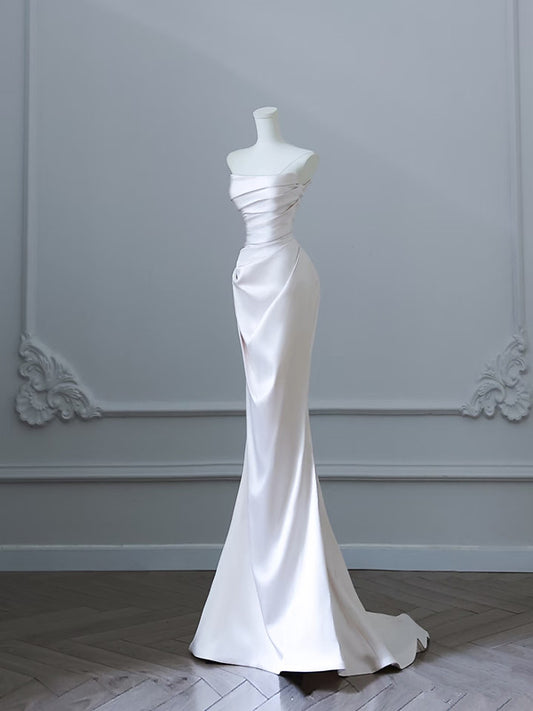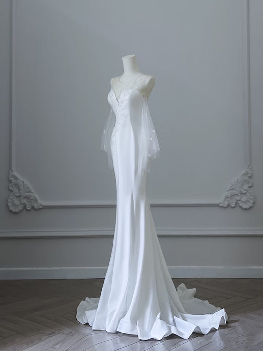 Sexy Mermaid Strapless Short Sleeves White Satin Wedding Dresses Brides Dress SD1872